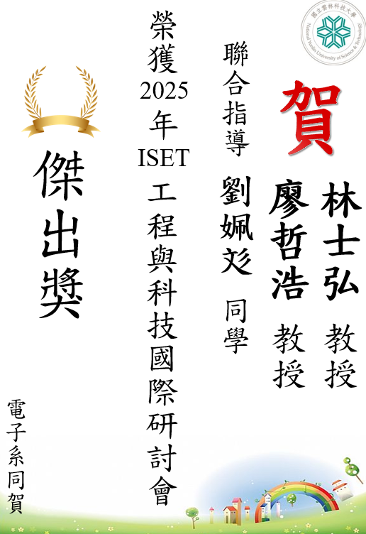 劉佩雯同學 榮獲 2025年 ISET 工程與科技國際研討會 傑出獎
