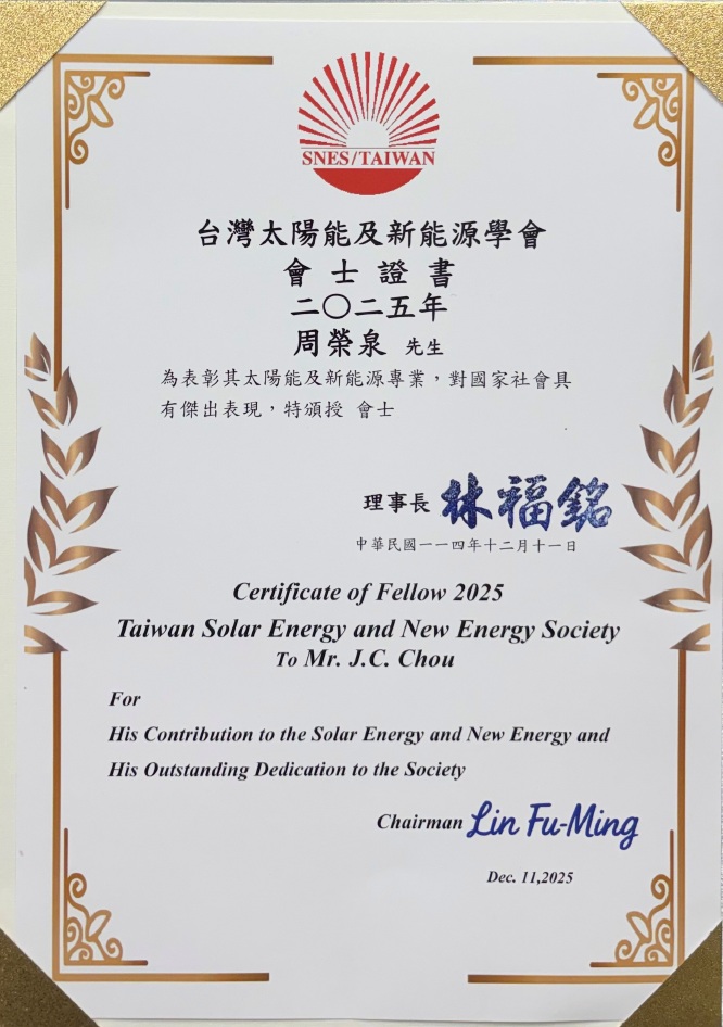 榮獲 2025台灣太陽能及新能源學會學士