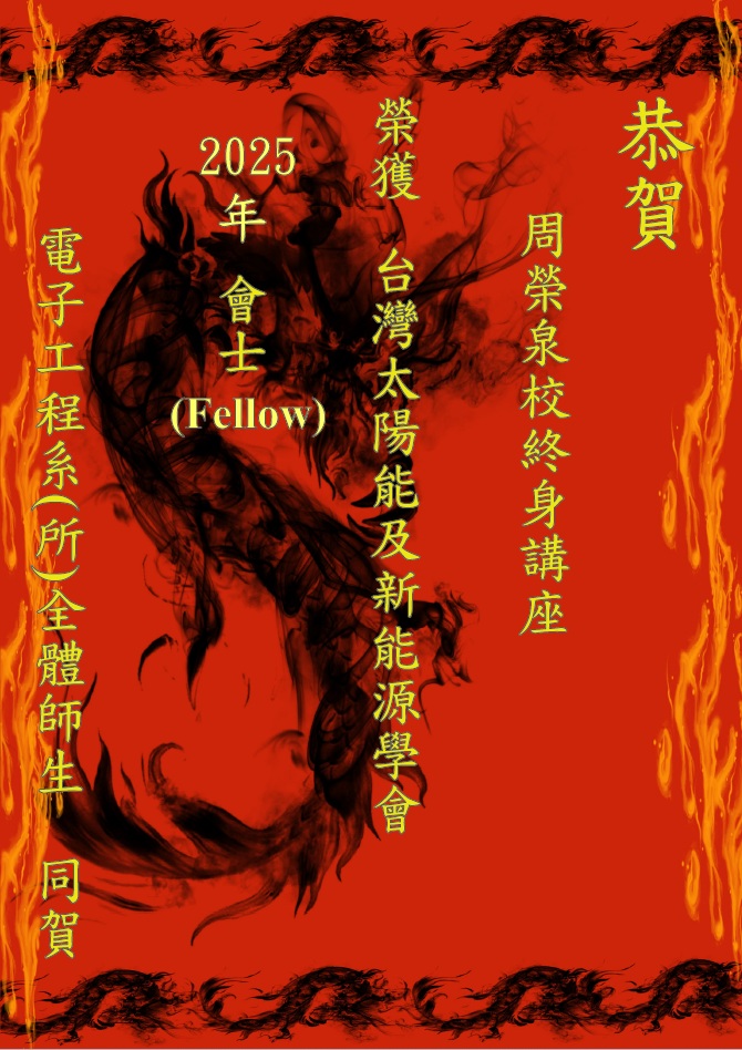 恭賀 周榮泉 講座教授 榮獲 2025台灣太陽能及新能源學會學士